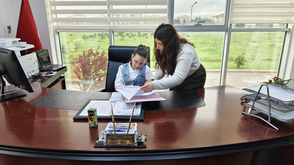 Etkinlik kapsamında Yüksekokul Müdürü Prof. Dr. Alptürk Akçöltekin'in koltuğuna oturan Ada Onar, makamdaki ilk gününde büyük bir heyecanla vizyonunu paylaştı. Görevi devraldıktan sonra bir konuşma yapan Onar, üniversite yönetimine dair hayallerini şu sözlerle ifade etti: